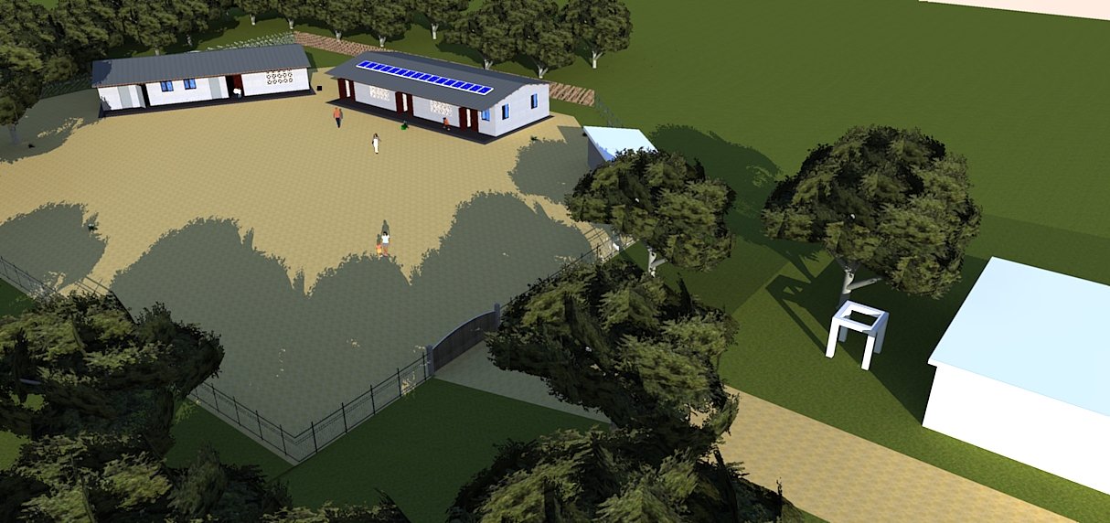 Pour la construction, nous disposons d’un terrain de 70m par 72m soit environ 5000m². Nous avons divisé le projet en deux bâtiments. Le premier comporterait trois salles de cours de 56m², le bureau du directeur de 9m² ainsi qu’une salle pour les professeurs de 24,75m². Le second bâtiment de 60m² sera constitué de la bibliothèque et de la salle multimédia ainsi que d’un local technique recevant le serveur pour faire fonctionner les ordinateurs ensemble.