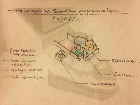 Cette année la Casa Geraçao Vidigal a reçu plus de 600 candidatures, pour 20 élèves sélectionnés. La Casa se doit d’augmenter le nombre de ses élèves. Pour ce faire, elle prévoit un réaménagement de ses locaux qui se divise en 3 étapes :