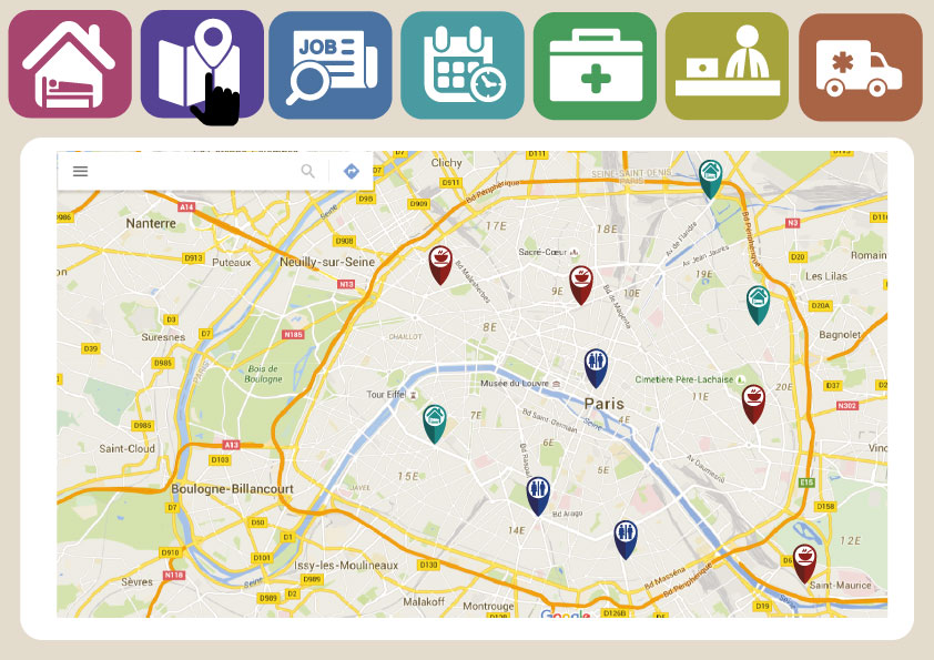 - Carte des points d’intérêt : regroupe les points d’intérêt pour les sans-abris et permet d’y tracer un itinéraire.