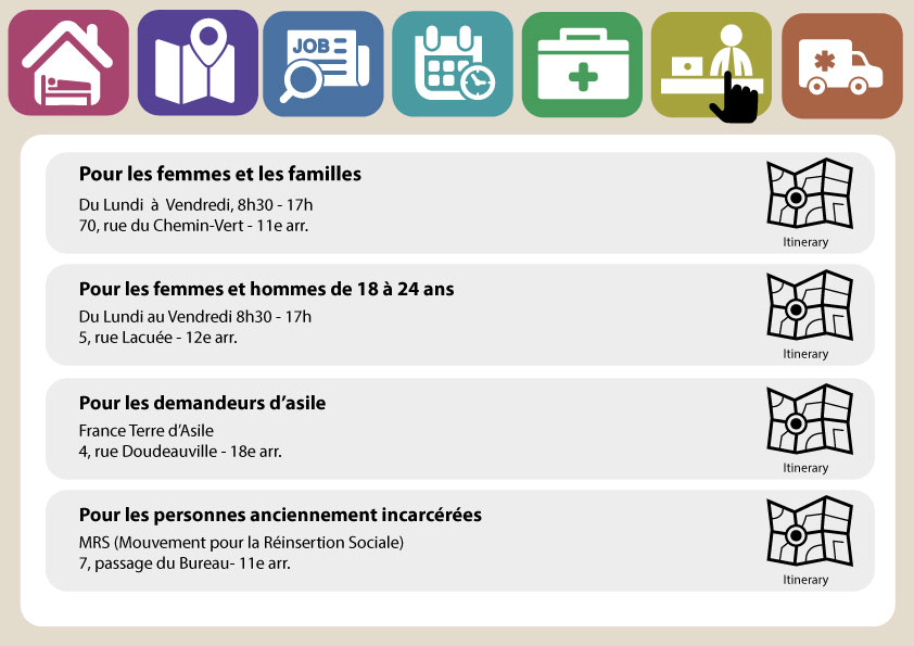 - Centres de soins : description des différents centres de soins ouverts aux sans-abris.