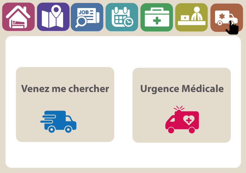 - Appel d’urgence : cette fenêtre permettra aux sans-abris de communiquer avec une association qui pourra venir les chercher par exemple pendant les périodes de grand froid, ce qui se fait actuellement par des maraudes. De plus, un bouton d’appel d’urgence permet d’appeler les secours.