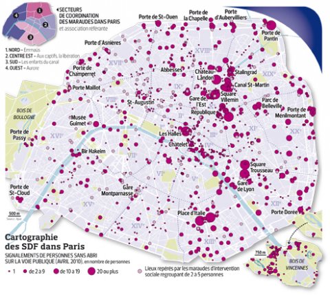 Cartographie des SDF dans paris (Avril 2010)