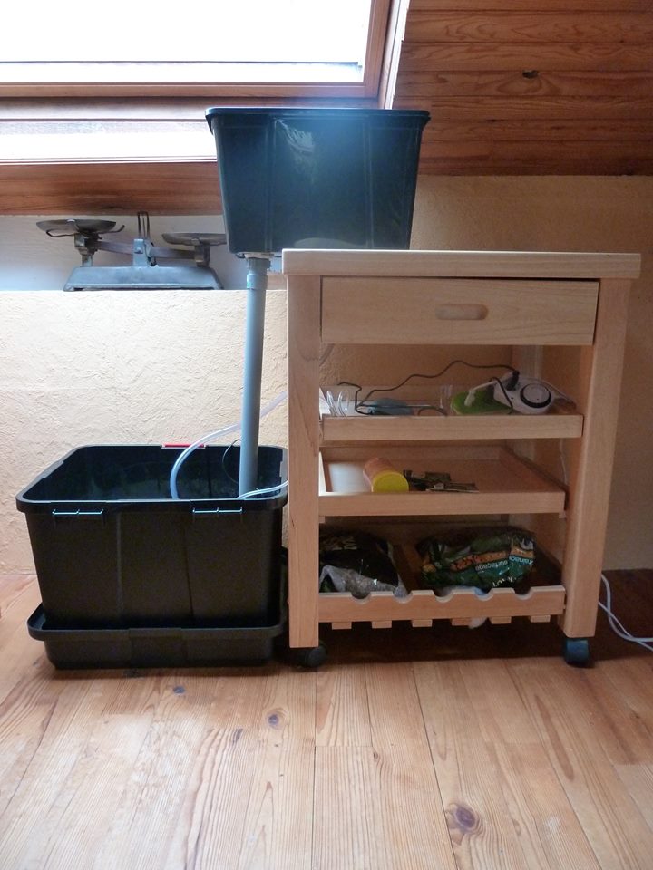 L'aquaponie est la culture de poissons et de plantes ensemble dans un écosystème construit en circuit fermé, utilisant des cycles bactériens naturels pour transformer les déchets des poissons en nutriments pour les plantes. C'est une façon écologique et naturelle de produire de la nourriture sans avoir besoin de rejeter de l'eau, de la filtrer ou d'utiliser des fertilisants chimiques". Cette technique ancestrale est connue mais peu exploitée dans le domaine du développement en raison de son installation onéreuse. Notre souhait est donc de créer un système d'aquaponie à faible coût, et utilisant des matériaux locaux afin de mettre à contribution l'économie locale. Le système sera aussi réplicable ainsi, d'autres ONG pourront répandre ce modèle à plus grande échelle, et bénéficieront de notre expertise. Pour s’entrainer à construire le système, Yoan, notre spécialiste en technique, a monté le sien, chez lui. Voici le résultat !